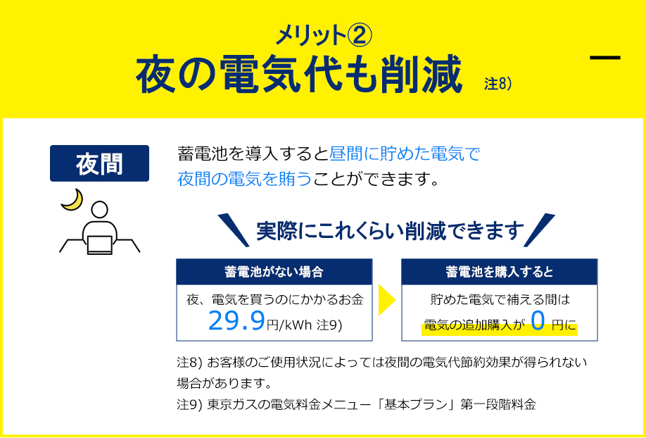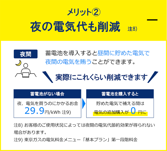 注6)デマンドレスポンスの略。蓄電池を制御・活用することで、電力需要を変化させて需要と供給のバランスをとることをいいます。DR実証に参加する場合は別途東京ガスの蓄電池ネットワークサービスにご加入いただく必要があります。また、蓄電池ネットワークサービスにご加入いただける蓄電池のメーカーおよび機種には条件があります。詳しくは東京ガスまたは提携販売工事店にお問い合わせください。