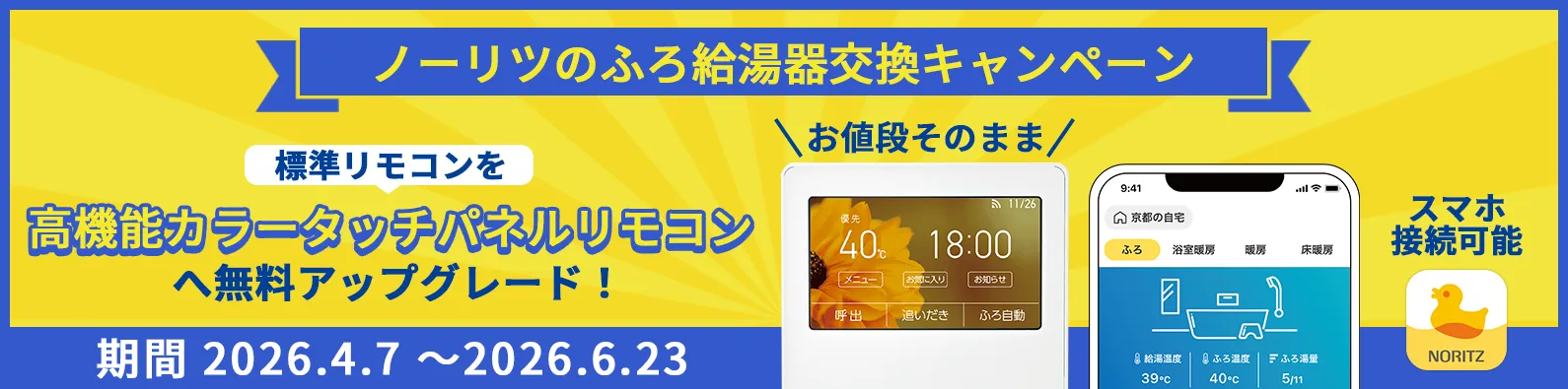 注1)ノーリツの高効率ふろ給湯器(オートグレード)は本キャンペーンの対象外です。