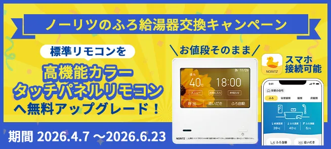 毎月先着300台限定!ノーリツの対象給湯器への交換でリモコン無料アップグレード!