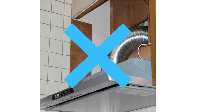 レンジフードのダクトは、お客さまの目に触れることはほとんどありません。そのため、業界の一部では条例に適合しないダクトを使った工事が行われてしまうことがあります。