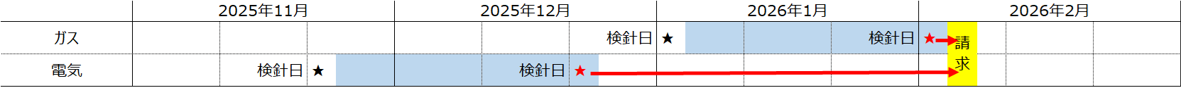 (例(2))ガス料金2026年2月検針分と電気料金2025年12月検針分を合算して、2026年2月に請求する場合